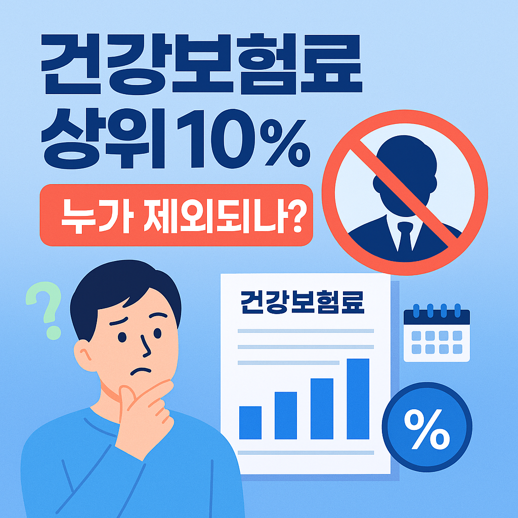 정부는 건강보험공단 6월 고지 기준을 적용해 상위 10%를 구분합니다. 직장가입자의 경우 월 보험료가 27만3380원을 초과하면 상위 10%에 포함됩니다. 지역가입자는 월 20만9970원 초과 시 해당됩니다. 직장인의 경우, 월 소득 약 800만 원 이상이면 이 구간에 해당한다고 보시면 됩니다.