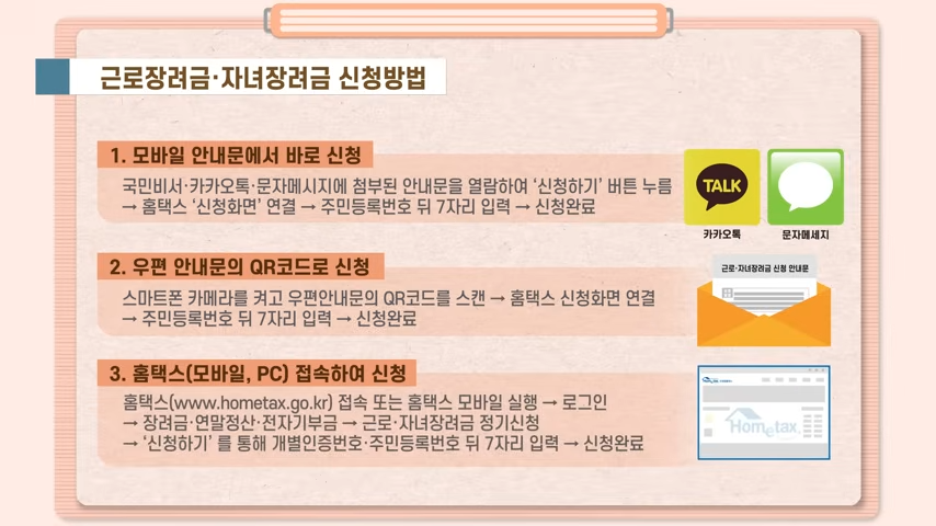 반기 신청은 상·하반기로 나뉘어 운영돼요. 6월 말 지급을 원한다면 상반기분(3월 신청)을 꼭 기억해야 해요. 반면 하반기분은 9월 신청 후 12월 말에 지급되므로, 연말을 목표로 하는 분들에게 적합해요. 다만 자녀장려금은 반기 신청 상반기분에선 제외되며, 하반기 정산 시 함께 지급됩니다. 소득이나 재산 조건을 충족하지 못하면 이미 받은 금액도 환수될 수 있으니 주의하세요.