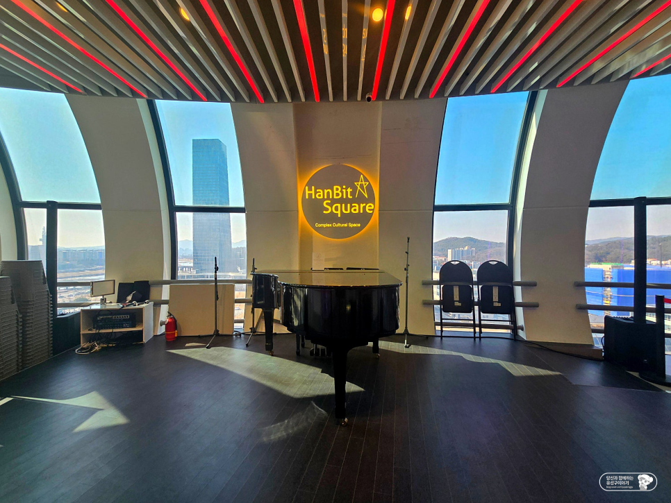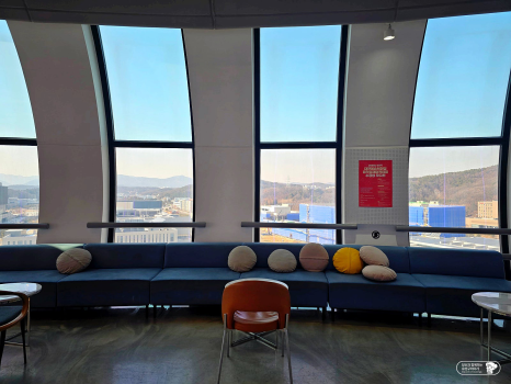 한빛탑 전망대는 입장료가 없어요. 누구나 자유롭게 이용할 수 있다는 점이 큰 장점입니다. 전망대는 93m 높이로 대전 시내를 한눈에 조망할 수 있고, 내부는 우주선처럼 원형 구조로 되어 있어 색다른 분위기를 느낄 수 있어요. 유리창을 따라 놓인 휴식 공간에서 조용히 대전을 감상하기에도 딱 좋고, 중앙에는 간이 연주 무대도 있어 때때로 공연이 열리기도 해요.