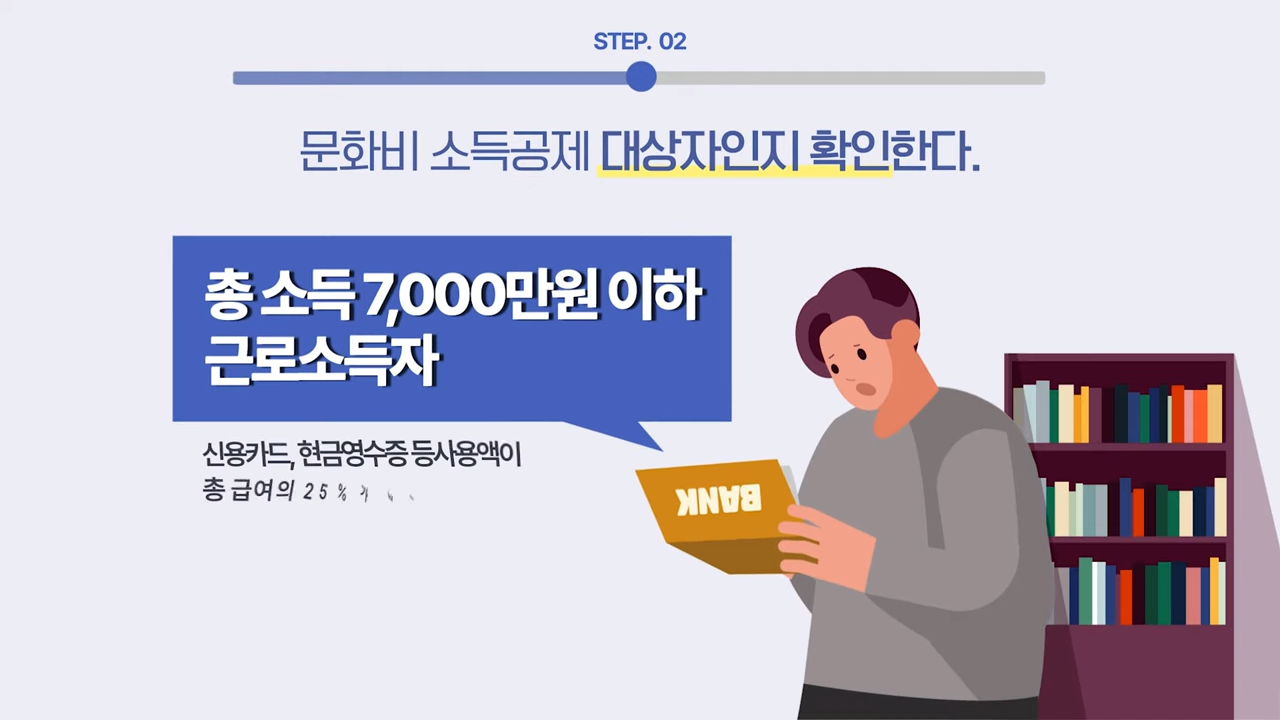 근로자가 신용카드·체크카드·현금영수증으로 도서, 공연, 박물관, 영화 관람비 등 문화비를 결제할 경우 소득공제를 받을 수 있는 제도예요.