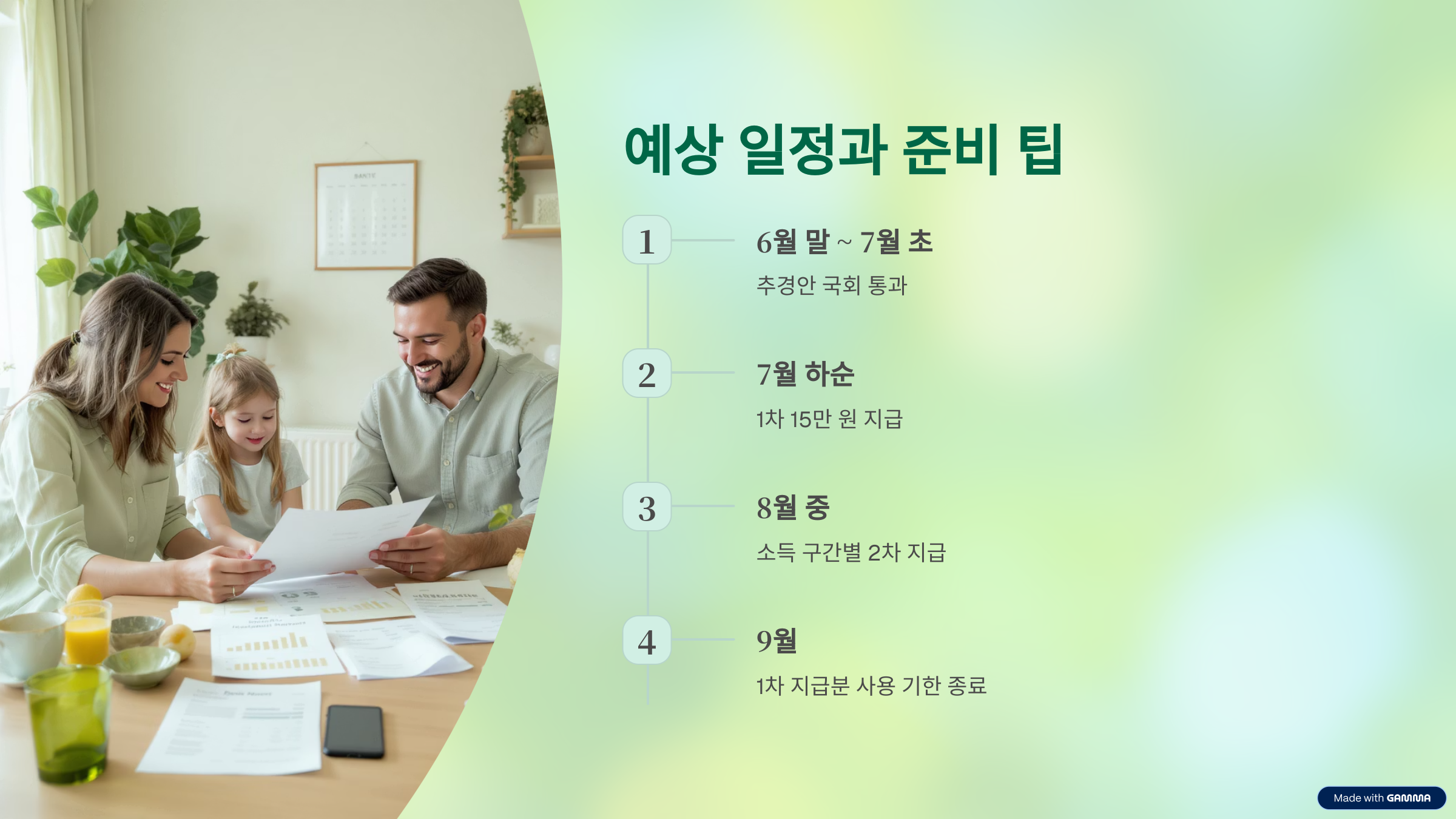 - 6월 말 ~ 7월 초: 추경안 국회 통과