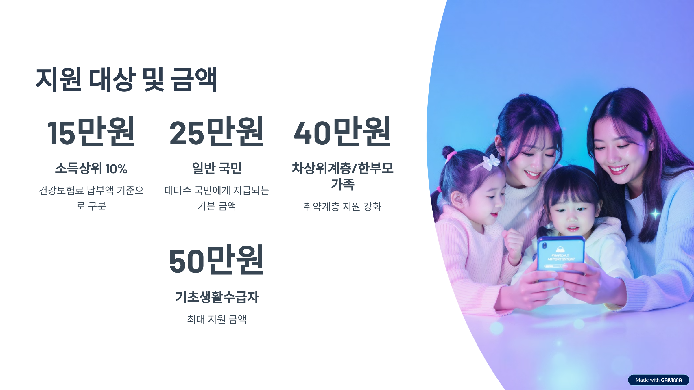 지원 대상과 금액 차등 기준