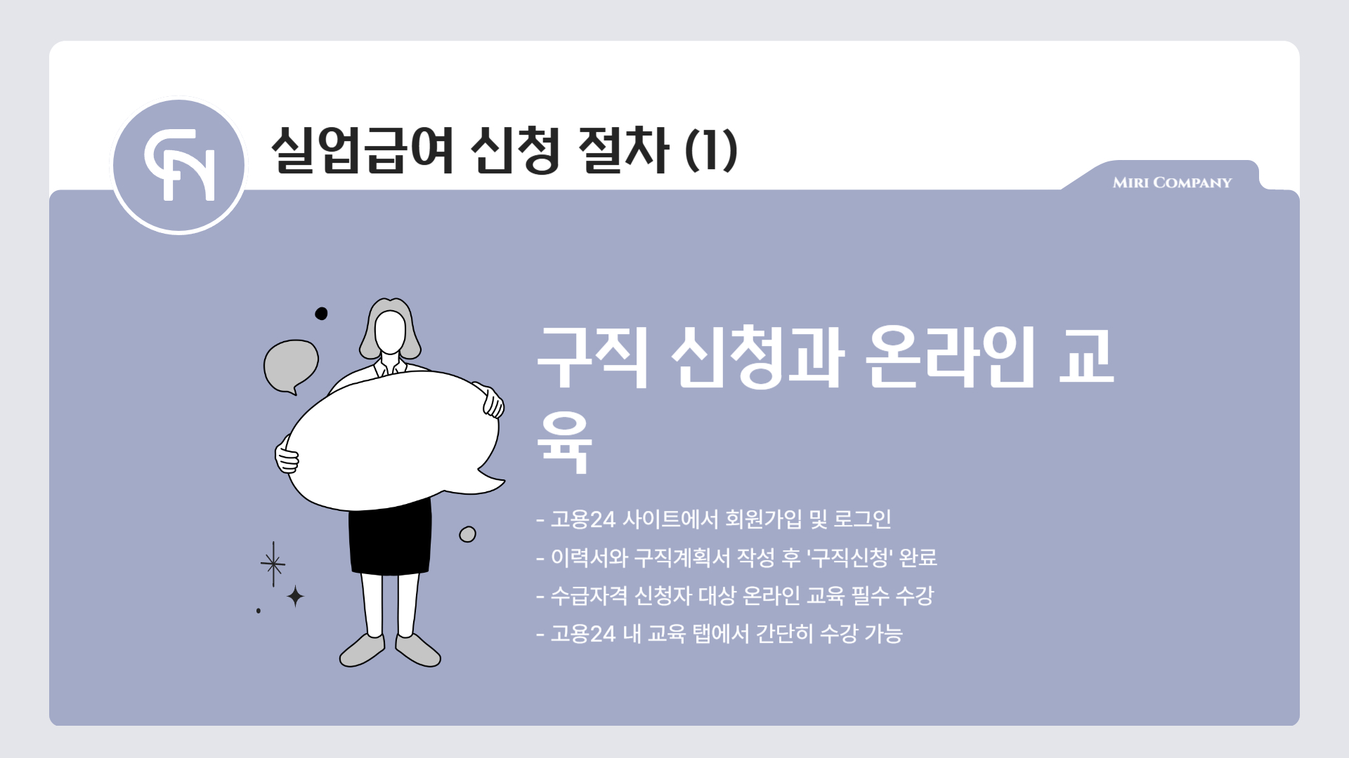 구직 신청 후에는 수급자격 신청자 대상의 온라인 교육을 수강해야 해요. 고용24 내 교육 탭에서 간단히 들을 수 있으며, 수강 완료 후 고용센터 방문 시 교육 이수 과정은 생략됩니다.
