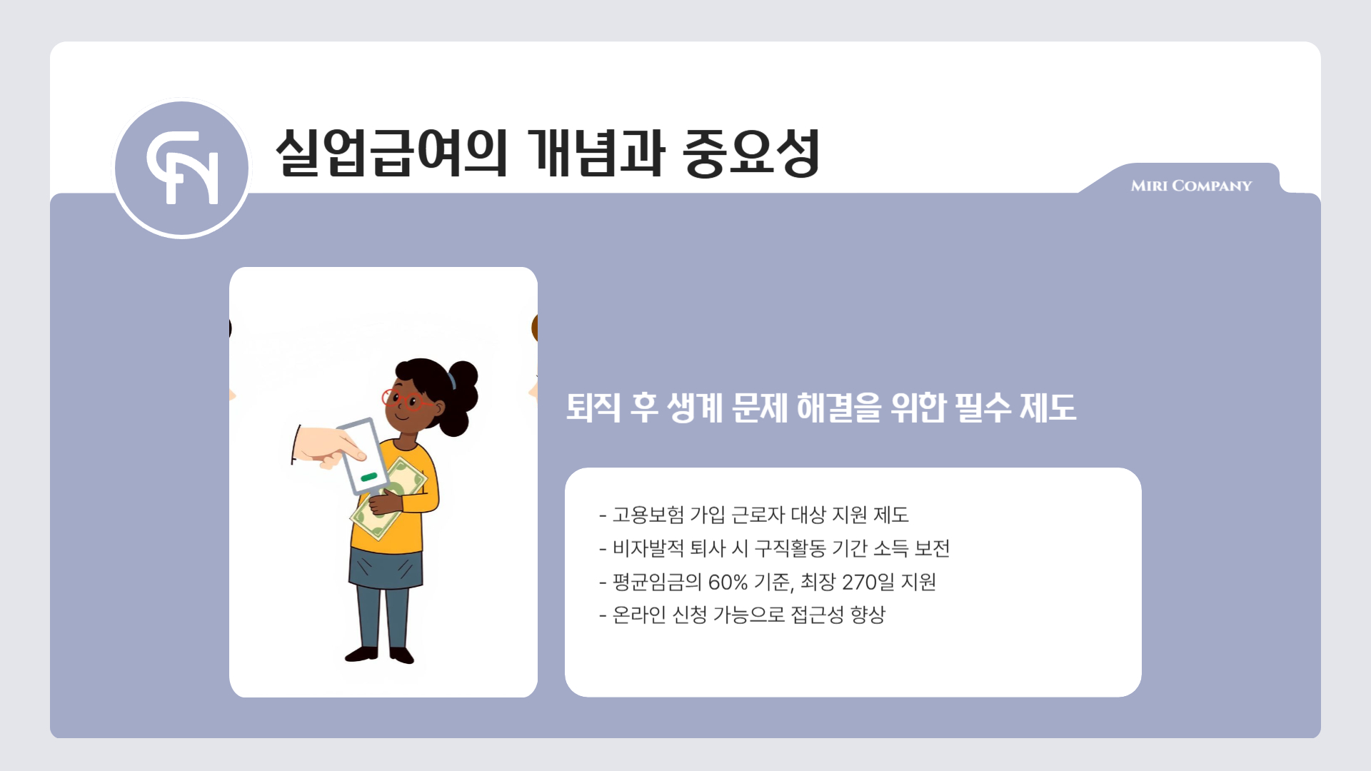 실업급여는 고용보험에 가입한 근로자가 비자발적으로 퇴사했을 경우, 구직활동 기간 동안 일정 금액을 지원해주는 제도입니다. 기본적으로 퇴직 전 평균임금의 60%를 기준으로 계산되며, 조건을 만족하면 최장 270일까지 받을 수 있어요.