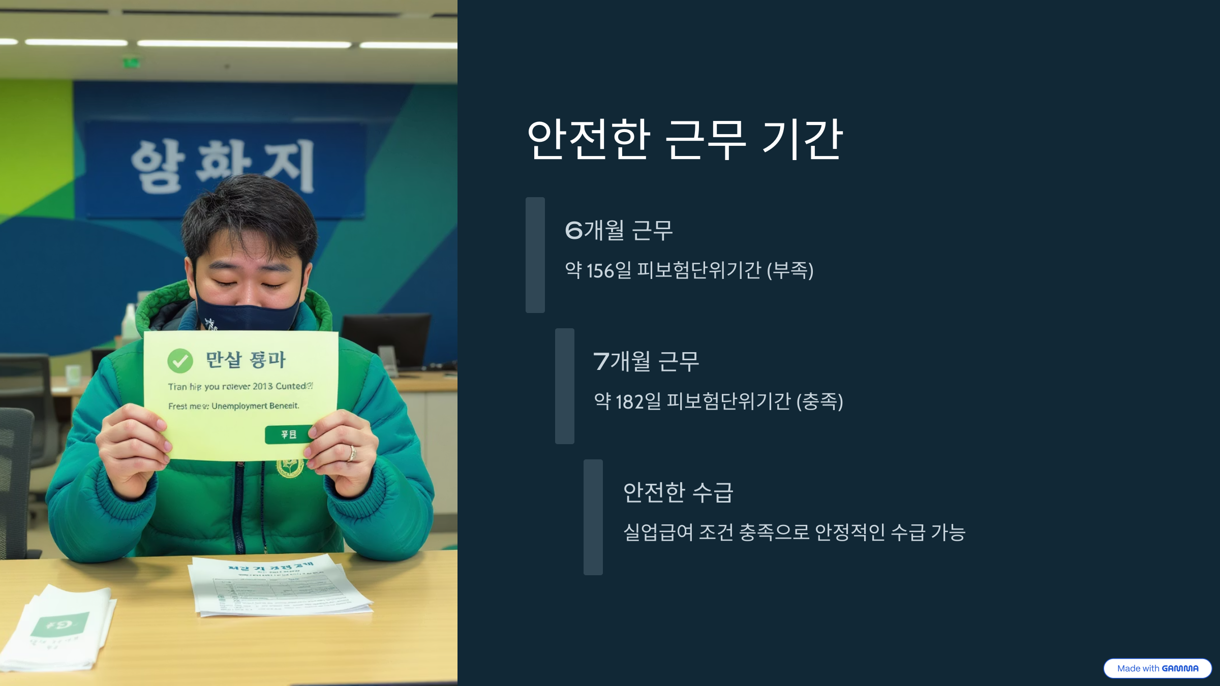 - 단순 고용보험 가입기간이 아닌 ‘실제 근무일수’ 기준