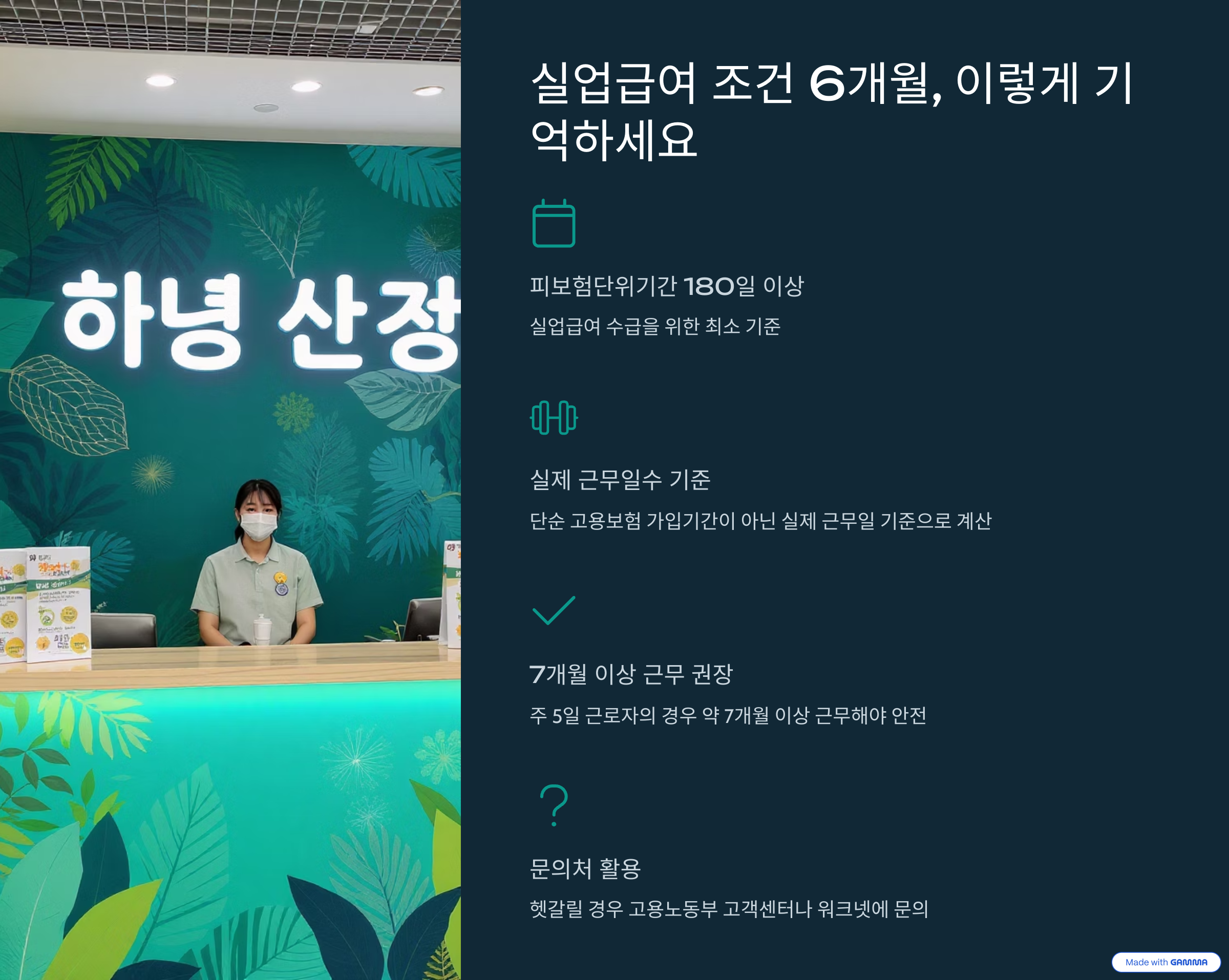 결론적으로, 실업급여 조건 6개월을 충족하려면 근무일수를 보수적으로 잡아 약 7개월 이상 근무하는 것이 안전합니다.