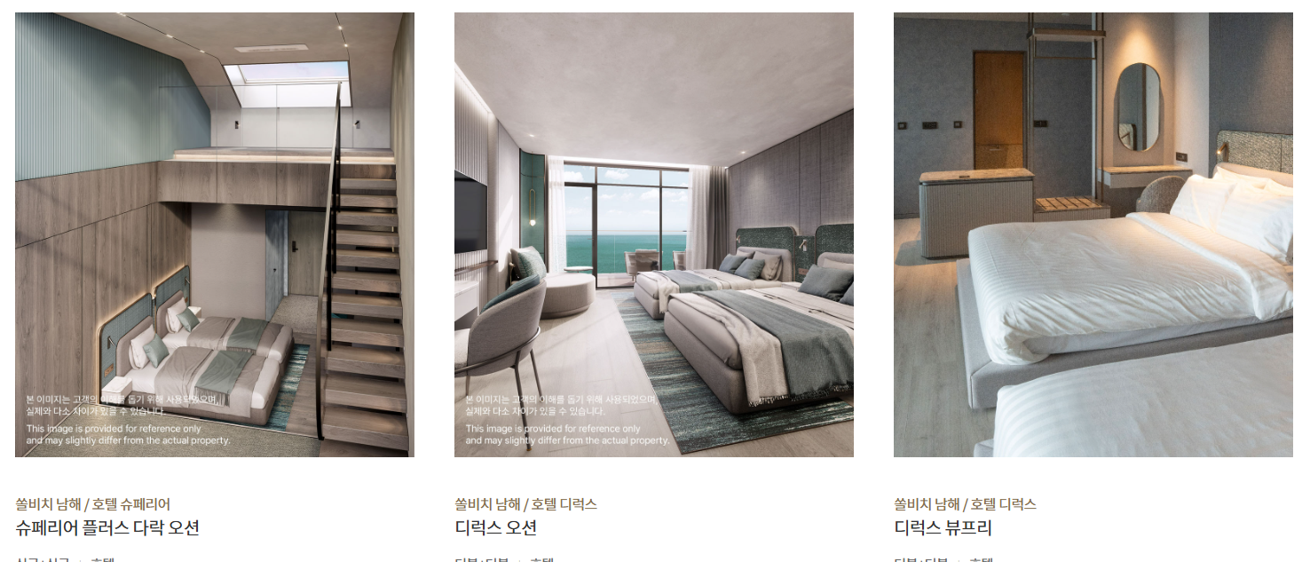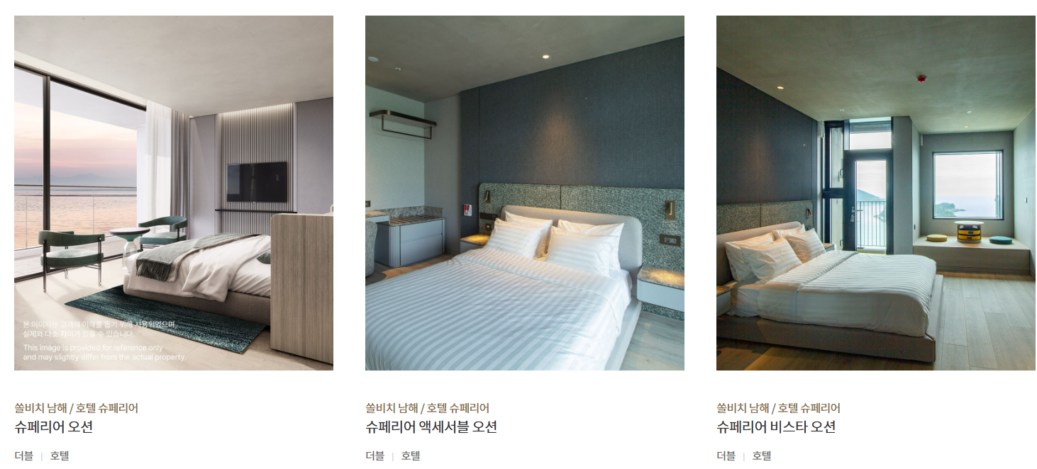 쏠비치 남해 호텔은 총 5가지 등급(슈페리어, 디럭스, 프리미어, 프레스티지, 프레지덴셜)으로 나뉘며, 각 등급 안에서도 세부 타입이 다채롭습니다. 침대 구성, 공간 구조, 뷰 콘셉트까지 정말 섬세하게 나뉘어 있어서 가족 단위, 커플, 단체 여행까지 모두 커버가 가능해요.
